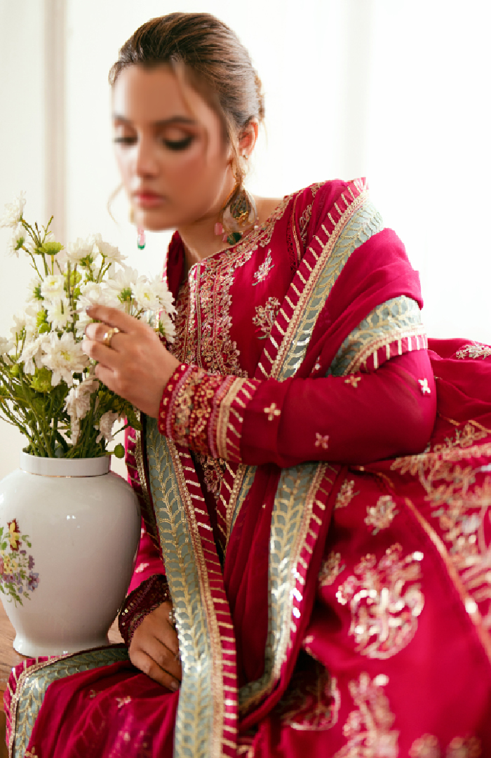 Sequins Embroidered Contrast Rawsilk Dupatta border